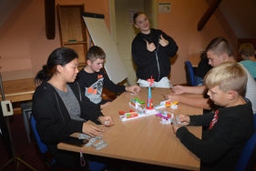 Der heutige Tag begann nicht mit einer Zeitreise. Wir haben ein wenig Pause gemacht. Es gab ein gleitendes Frühstück und alle konnten ein wenig länger schlafen. Danach durften die Kinder frei entscheiden was sie tun möchten. Es wurden viele unterschiedliche Spiele angeboten, aber alle durften heute auch ein wenig auf dem Zimmern entspannen. Nach dem Mittagessen ging es auf den Sportplatz. Nach einer kleinen Wanderung haben wir Spiele, wie zum Beispiel Völkerball und Brennball, gespielt. Am Abend ging es, beim Casinoabend, ums Geld mit vielen verschiedenen Spielen. Ziel war es in den verschiedenen Forscherteams das meiste Geld zu ergattern. Für den nächsten Tag konnten die Kinder das Programm mitbestimmen. Die Kinder freuen sich morgen auf das Spiel „Sammeln von Ressourcen“ am Steinzeit-Tag.