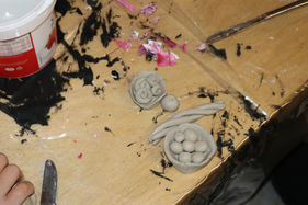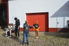 Aber bevor wir uns unter das Volk mischen können müssen wir uns entsprechend vorbereiten. Wir haben in zwei verschieden Workshops am Vormittag Helme gebastelt und getöpfert.
