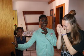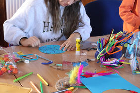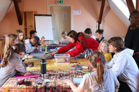 Heute sind wir wieder in die Vergangenheit gereist und gelandet sind wir in den 80/90ern Jahren. Wie immer startete unser Tag mit einer Morgenrunde und dann einem leckeren Frühstück. Beim Frühstück kündigten wir das Morgenprogramm an, dies waren drei Workshops, die in den Rudeln bearbeitet wurden. Einmal haben wir aus Wolle und Loom Bands Armbänder geknüpft, der zweite Workshop war basteln. In diesem Workshop haben wir aus Pappe Masken und Dekoration für die Disko am Abend vorbereitet. Der letzte Workshop war eine Choreografie vorzubereiten, die dann Abends bei der Disko vorgeführt wurden. Am Nachmittag sind wir zum Sportplatz gelaufen und haben ein paar Runden Brennball gespielt.